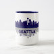 Cette tasse de café en céramique est montrée dans un skyline imprimé Seattle. Couleur Marine Bleu Choisissez un autre style de tasse ou achetez tel quel. Image sous licence