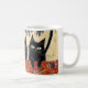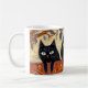 Une tasse de chat fantaisiste avec trois chats noirs. Image stylisée mignonne.