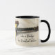 Cette tasse évoque le son de la musique folklorique, avec une photo d'une guitare classique en bois avec une sangle tressée colorée en rouge et noir avec des touches de blanc et de bleu. Le arrière - plan crème neutre a une texture subtile.
