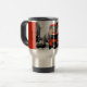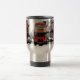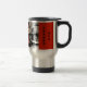 Commuter Mug montrant l'historique bus Routemaster de Londres, mis en évidence en pleine couleur contre un arrière - plan traité en noir et blanc numériquement. Photographie et oeuvre de Caroline Webb