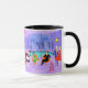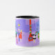 Cette Mug Retro Tropical Christmas Party est assez festive pour égayer les perspectives de vacances de n'importe qui ! Le dessin animé présente le type de fête de Noël extrêmement sophistiqué qui n'est normalement visible que dans les films de Noël des années 1960. Un salon moderne du milieu du siècle est rempli de fêtards qui apprécient la décoration chic et violette. Une jolie femme en uniforme de domestique française porte un plateau de martinis. Elle se tient à côté d'une cheminée rouge à cônes avec un feu rugissant. Trois bas verts sont accrochés avec soin par la cheminée mod. Au centre de la pièce, un beau couple s'installe dans des chaises à oeufs d'orange. La femme porte une robe festive et verte. L'homme porte un costume noir avec une cravate rouge. Ils tiennent chacun un martini. Un autre couple devient cosy sous un lustre suspendu, jaune, Spoutnik. Le distingué homme aux cheveux gris porte un costume bleu, une chemise bleu clair et une cravate rouge. Il porte aussi un chapeau de Père Noël et tient un martini dans chaque main, montrant au monde que ses jours de fête sont loin d'être terminés. Son compagnon est une blonde en forme dans une robe rouge étonnante. M. Distinguished ferait mieux de faire attention parce qu'elle tient une pointe de faux-pied dans sa main. A l'avant de la pièce, un sapin de Noël kitsch et rose, orné de turquoises ornements et d'une étoile jaune. Derrière cette scène, on peut voir à travers des murs en verre du sol au plafond. La scène extérieure dispose d'une piscine ronde et turquoise. On peut voir la silhouette violette d'une femme plongeant ses jambes dans l'eau. Entre les murs violets et en pierre, il y a des silhouettes de palmiers ornés de décorations et de lampes de Noël. Les silhouettes de danses et de fêtards parlants sont également visibles. S'il y a une chose que cela prouve, c'est que, tandis que les gens qui vivent dans des maisons en verre ne devraient pas jeter de pierres, ils devraient certainement jeter des fêtes !
