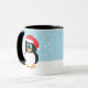 Profitez de cette mignonne confiture de pingouin de Noël pour votre café du matin ou offrez-la en cadeau. Cette tasse de vacances comprend un pingouin portant un casquette du Père Noël avec un arrière - plan de flocon de neige. Il s'agit d'un Joyeux Noël. Vous pouvez même personnaliser cette tasse de Noël de pingouin avec un nom ou ajouter du texte comme "Joyeux Noël" sous le pingouin. Amusez-vous à customiser le design de la tasse de pingouin.