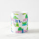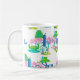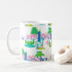 Saint-Louis Landmark Mug. L'illustration présente l'arc Saint-Louis, le musée d'art, le centre des sciences, la boîte à bijoux, le zoo, le musée municipal, le jardin botanique du Missouri, le bois de chien et le cardinal.