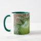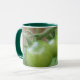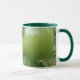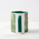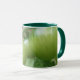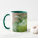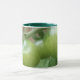 Cette belle tasse présente une photographie d'une bande de tomates cerises vertes non mûres poussant sur un plante de tomates dans un jardin de banlieue. La photo a été prise en utilisant la macro photographie pour un résultat détaillé. Le design est montré sur une tasse de style rond vert, mais est également disponible sur plusieurs autres styles et couleurs de tasses.