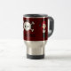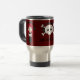 Roche personnalisable de filles de Goth ! tasse de voyage avec les personnages de dessin animé mignons de fille de Goth avec de longs cheveux et écouteurs rouges tenant des crânes. Un crâne avec des écouteurs au centre de la tasse. Arrière - plan rouge foncé avec une frontière noire. Police géniale de crâne. Un amusement et un cadeau original pour les filles affectueuses de goth de musique.