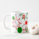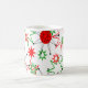 Cette tasse a un design moderne du milieu du siècle des étoiles et des cercles aux couleurs de Noël. Amusant et festif. Utilisez cette tasse pour votre café, thé ou chocolat chaud le matin de Noël.