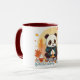 Adorable petit panda faisant griller un marshmallow au-dessus d'un petit feu de camp, en forêt par un bel après-midi d'automne
