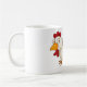 Ce dessin est un poulet de dessin animé. Le poulet est blanc avec la queue rouge et est debout sur le côté. Ce poulet est dans un style de dessin animé. Ce dessin animé de poulet a l'air très bien sur cette Mug