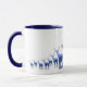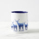 Cette tasse est affichée à l'extérieur blanc avec un joli cerf/wapiti bleu entendu imprimé sur le bord inférieur de la tasse de droite à gauche graduant en taille comme s'ils marchent au loin. L'intérieur et la poignée sont bleu marine. Customisez cette tasse ou achetez comme prévu. Image stock avec l'aimable autorisation de www.freepik.com