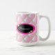 Joli motif en diamant couché rose et vert. diamants 3d. Le mot "princesse" accentue chaque côté de la tasse.