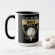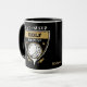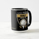 Cette tasse présente un logo de golf en or pâle et blanc. L'image montre une balle de golf sur un tee, et le texte dit "EAT SLEEP GOLF REPEAT". L'image est répétée deux fois, et votre nom est en or pâle au centre inférieur.
