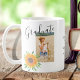 Cette Mug à saké floral est décorée de tournesols et de feuillage. Remplacez la photo et customisez-la par votre nom, votre école et votre année. Pour modifier davantage, utilisez l'outil de conception pour modifier la police, la taille de police ou la couleur. Parce que nous créons notre oeuvre, vous ne trouverez pas cette image exacte d'autres designers. Aquarelle originale © Michele Davies.