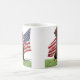 Un Pinscher rouge de dobermann devant un drapeau américain de ondulation.