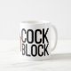 Une tasse avec le design de Mighty Cockblock et le caractère original de Stitchmind Artworks.
