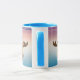 Parler de la tasse d'orignal avec du arrière - plan de mer bleu et violet.