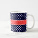 Motif de point Polka bleu et blanc de la Marine, Étiquette de ruban rouge de corail Customisez ceci avec votre nom, monogramme ou autre texte. Vous pouvez également modifier les polices, ajuster la taille des polices et les couleurs des polices, déplacer le texte, etc. Besoin de ce motif dans d'autres couleurs ou designs ? Il suffit de nous envoyer un email et de nous le faire savoir ! Veuillez noter qu'il s'agit d'un design graphique numériquement qui est transféré au produit sous-jacent. La conception elle-même ne contient pas de ruban, de étiquettes, de métaux ou de gaufrage. 2013 ©FantabulousPatterns Tous droits réservés