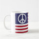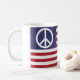 Ce dessin présente une variante du drapeau national des Etats-Unis d'Amérique avec un signe de paix blanc dans le canton bleu en haut à gauche. Il peut être considéré comme un emblème de l'activisme anti-guerre, symbolisant l'espoir d'un monde meilleur.