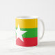 Ce dessin est orné du drapeau national du Myanmar (Birmanie) (officiellement connu sous le nom de République de l'Union du Myanmar), un pays d'Asie du Sud-Est. Le Myanmar est bordé par le Bangladesh et l'Inde au nord-ouest, la Chine au nord-est, le Laos et la Thaïlande à l'est et au sud-est, et la mer d'Andaman et la baie du Bengale au sud et au sud-ouest. La capitale du Myanmar est Naypyidaw, et la plus grande ville du pays est Yangon (Rangoon). Les autres grandes villes du Myanmar sont Mandalay, Bago, Hpa-An, Taunggyi, Monywa, Myitkyina, Mawlamyine et Magway.