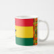 Cette tasse présente le drapeau de la nation africaine du Ghana avec un petit motif en tissu Kente sur les bords et vous pouvez également y customiser le texte.
