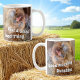 Partagez l'humour du café du matin avec un lève-tôt ou quelqu'un qui n'aime pas trop les matins. Cette photo de poulet des deux côtés de la poignée comporte également du texte modèle. Personnalisez les quatre lignes de texte modèle qui apparaissent de part et d'autre de la poignée, supprimez le texte ou modifiez-le à l'aide de l'outil de conception pour sélectionner le style, la taille et la couleur de police que vous préférez.
