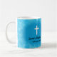 Baptême souvenir tasse avec design "Eaux de Baptême" pour un souvenir de cette journée spéciale. Personnalisable. Design Baptême simple de croix et d'eau.