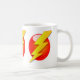 Graphique vibrant d'un éclair jaune sur un arrière - plan circulaire rouge, symbolisant vitesse, puissance et énergie, rappelant l'iconographie de superhéros.