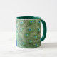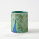 Proud paon montre ses plumes de queue avec les "yeux" bleus et verts. Ses brillantes plumes bleues sur la tête, le cou et la poitrine sont un contraste frappant avec les teintes vertes dans les plumes de queue.