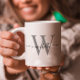 Élégant, minimaliste, moderne, mug personnalisé avec monogramme initial et nom personnalisé en script féminin blanc et gris. Ce design minimaliste présentant un nom personnalisé dans une jolie typographie de lettre à la main avec des fioritures, un modèle de monogramme initial, facile à personnaliser. Superbe cadeau féminin et élégant pour une pendaison de crémaillère, également pour un anniversaire, un enterrement de vie de jeune fille, un mariage, la fête des mères, une fête d'anniversaire pour les 16 ans, une baby shower, pour une fête de fin d'études et c'est pour la fille qui aime les choses minimalistes élégantes.