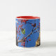 Un gros plan d'un écureuil roux de queue mangeant des baies rouges avec le ciel bleu, brillant et coloré. C'est clair et coloré qui est sur un MUG.