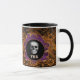 Cette tasse à café Halloween éffrayante mais élégante présente un crâne effrayant, encerclé en noir et entouré d'un cadre violet et orange, de chaque côté de la tasse. Vos initiales apparaissent ci-dessous dans la typographie d'inspiration grunge. Des roses damassés, feuille et noirs en dentelle ornent l'arrière - plan. Le look est soigné mais frappe définitivement une ambiance gothique ou haloween. Cette tasse est présentée dans une option pour une poignée noire et l'intérieur, mais d'autres couleurs comme l'orange sont disponibles, ainsi que d'autres options de buvette.