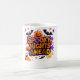 Lettres d'Halloween colorées avec chauves-souris, bonbons et citrouilles.