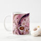 Cette tasse à café présente un design chic et rafraîchissant qui met en valeur l'art sur le thème du café avec des fleurs et des rubans. La motif comprend des tasses à café vapeur et des haricots à café, élégamment arrangés sur un arrière - plan rose doux aux textures rayées subtiles. Les rubans de lavande et de rose luxueux sont agrémentés d'un design qui crée un sentiment de sophistication et de charme. Au centre, un monogramme encastré dans un emblème rose peut être personnalisé avec des initiales, ce mug est un choix idéal pour un cadeau customisé ou un ajout élégant à la collection d'un amoureux du café.