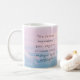 Create your own custom quote mug. Features your 2 of personalized text in an elegant minimalist italic serif typography with sunset clouds background.