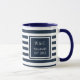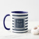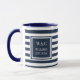 Tasse à monogramme personnalisée et tendance avec des initiales personnalisées avec un motif à rayures bleues marine et blanches avec vos initiales et le nom de votre famille avec la date d'établissement indiquée dans un carré bordé de bleu marine avec un texte blanc classique. Conçu par Thisisnotme©
