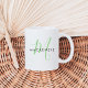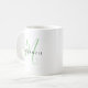 Élégant Script Vert Moderne Monogramme Café Mug. Un élégant monogramme de script vert combiné à une police de caractères noir propre san-serif donne un look contemporain.