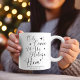 Élégant script de calligraphie Oh Come Let Us Adore Him Joyeux Mug de Noël - Une prise moderne à un hymne de Noël traditionnel et classique. Apportez une touche d'élégance chic à vos matins en vous souvenant de la véritable Raison de la Saison. Personnalisez avec votre propre message et nom.