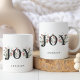 Cette tasse de vacances élégante et festive est ornée du mot JOY accentué par une belle aquarelle et des baies sur un arrière - plan blanc classique. Customisez-le avec votre nom ou votre texte. Cette belle tasse de vacances fait un cadeau fabuleux pour la famille et les amis.