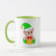 Un elfe vert mignon tenant une boîte cadeau sur Mug arrière - plan blanc. Le nom peut être personnalisé. Idéal pour la Saint-Patrick