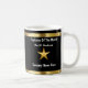 Employé chic des tasses de café de mois comprenant une étoile colorée par or et des éléments de dessin géométrique avec des modèles des textes que vous pouvez customiser en ligne. A conçu pour récompenser l'excellence et la productivité au travail avec la pleine conception montrée des deux côtés de la tasse de café pour le droit ou les buveurs gauchers.