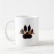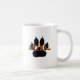 Une patte d'animal noir et des empreintes de griffe avec du texte brun. Design original.