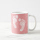 Empreintes de pas adorables de bébé, blanches sur l'arrière - plan rose, si mignon et doux pour un nouveau petit bébé. Aimez n'importe quel bébé avec le momento de petits pieds et orteils. Tout conçoit le © de Copyright www.CuteComfy.com 2012
