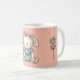 Enchanting children's room design. It features charming illustrations of little teddy with pink ribbon. Background orange.