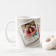 This design has a clean, minimalist look with a warm color palette that gives off a nostalgic, cozy feel. It features a stack of Polaroid-style frames with a customizable photo on one side and an inspirational message on the other. The combination of elegant fonts and soft, neutral colors makes it a versatile piece that can be personalized for any special occasion or relationship. Perfect for those who want to add a touch of warmth and sentiment to a mug, making each sip a reminder of a cherished connection.