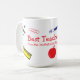 Montrez votre appréciation pour votre professeur préféré avec cette tasse avec des crayons de couleur, des crayons, des coupures de papier, des règles et des pommes. Vous pouvez réorganiser, redimensionner, copier ou supprimer chaque élément pour en faire votre propre conception. Le texte peut facilement être personnalisé et les couleurs customisées avec ce modèle.