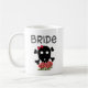 Cool squelette de mariée pour mariées de la hanche, mariées gothiques ou mariées d'Halloween. Ce crâne a un arc rouge et des fleurs rouges et le mot marié en noir et blanc.