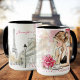 Esquisse d'aquarelle de Paris City avec une femme Nom personnalisé Coffee Mug.