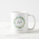 Une tenue de mariage douce et élégante, mug dispose d'une couronne d'aquarelle de feuilles d'eucalyptus vert sauge et feuillage avec "mariée" inscrit à l'intérieur en écriture manuscrite. Personnalisez avec votre date de mariage en dessous. Conçu pour correspondre à notre collection de fleurs de mi-été.