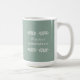 Cette tasse de café de 15 oz de taille ultra-compacte est composée de l'expression "Pratiquer la pleine conscience", avec un simple design en noir sur un arrière - plan vert poussiéreux avec branches d'ivoire.