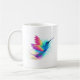 Bright, iridescent, exotic flying hummingbird on white background, painted over with multicolor, watercolor paint. Rainbow hummingbird.