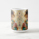 Fairy themed personalized coffee mug with a beautiful fairy holding her green and blue dragon. Her hair is adorn in white flowers and she has pretty translucent pearlescent purple wings.